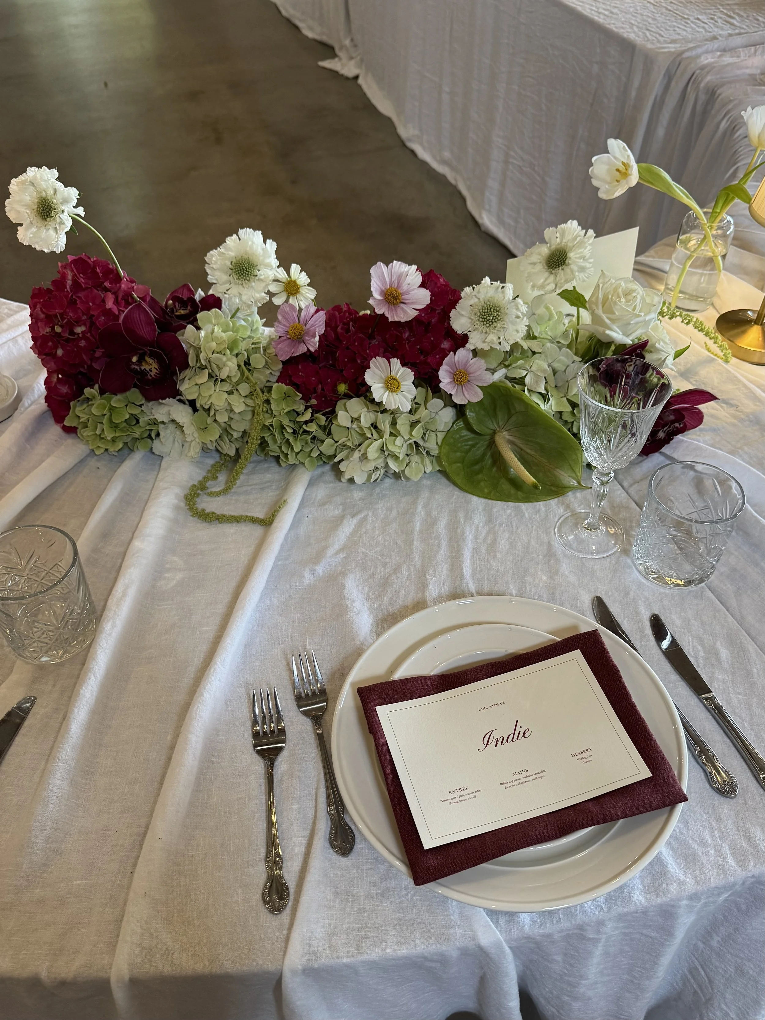 You source your items - from menus and signage to candles and personal details - and we step in to take care of the set up, ensuring everything is brought together with care and intention, while removing the stress of managing it all on the day.